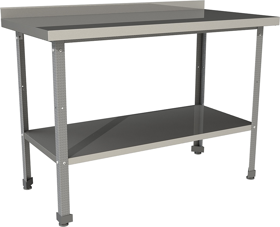 Производственный стол Restoinox СП-14/6-БП-ЭЦ серии 600 предназначен для обработки продуктов питания, раскатки теста, хранения кухонного инвентаря и оборудования на предприятиях общественного питания, торговли и пищевых производствах. Опоры ножек регулируются по высоте. Материал ножек - уголок из оцинкованной стали, материал рабочей поверхности и полки - нержавеющая сталь AISI 430.