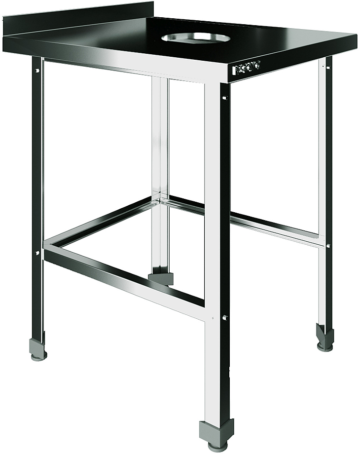 Производственный стол Restoinox СПО-6/7-БО-ЭЦ серии 700 предназначен для сбора пищевых отходов на предприятиях общественного питания, торговли и пищевых производствах. Опоры ножек регулируются по высоте. Материал каркаса и обвязки ног - уголок из оцинкованной стали, материал рабочей поверхности - нержавеющая сталь AISI 430.