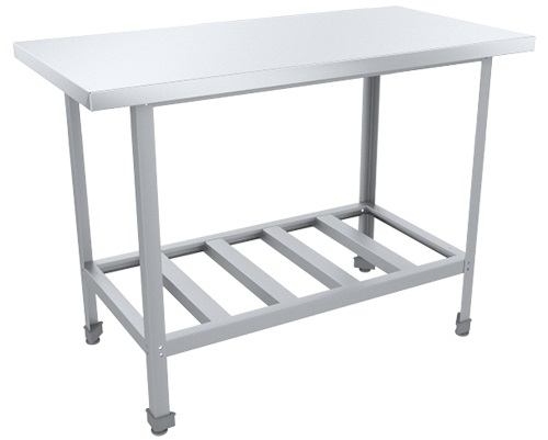 Производственный стол Пищевые Технологии Стандарт СРО-14/7СЦК предназначен для обработки продуктов питания, раскатки теста и хранения кухонного инвентаря на предприятиях общественного питания, торговли и пищевых производствах. Модель оснащена полкой-решеткой и регулируемыми опорами. Материал столешницы - высококачественная нержавеющая сталь AISI 430