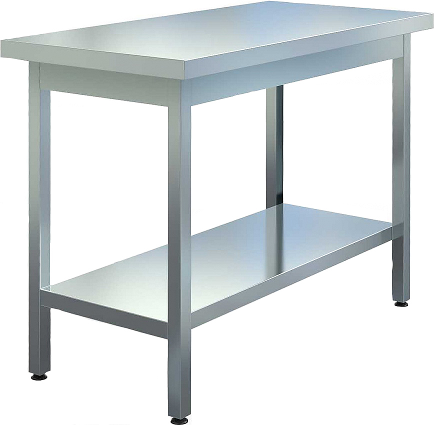 Производственный стол Assum СП-П2-7/7 серии Premium-2 используется на предприятиях общественного питания, торговли и пищевых производствах для работы с тестом, обработки ингредиентов перед приготовлением различных блюд и хранения кухонного инвентаря. Материал столешницы - нержавеющая сталь AISI 430 с листом ЛДСП, материал полки и каркаса - нержавеющая сталь AISI 430 (труба 40х40 мм толщиной 0.7 мм), материал опор ножек - пластик.