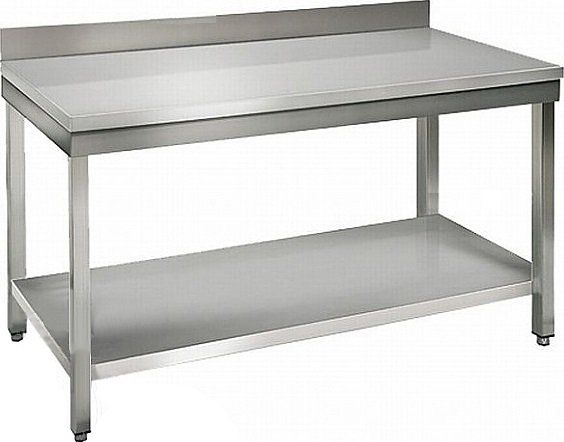Производственный стол Kocateq SAT127A предназначен для раскатки теста и обработки ингредиентов для приготовления блюд, хранения посуды и кухонной утвари на предприятиях общественного питания и торговли. Столешница выполнена из нержавеющей стали AISI 304 толщиной 1 мм, усилена вкладкой из ДСП с ламинированием открытой сторон, каркас и полка - из нержавеющей стали AISI 201, ножки - из трубы квадратного сечения 40x40 мм, пятки - из пластика.
