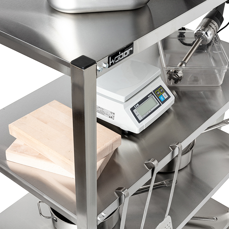 Кухонный стеллаж Кобор СКТР-60/30 предназначен для хранения посуды, различного инвентаря и сухих продуктов на предприятиях общественного питания и торговли. Модель оснащена регулируемыми по высоте ножками с опорами, которые не подвержены коррозии. Материал разборного каркаса - труба из нержавеющей стали (40x40 мм), материал полок - нержавеющая сталь AISI 430.