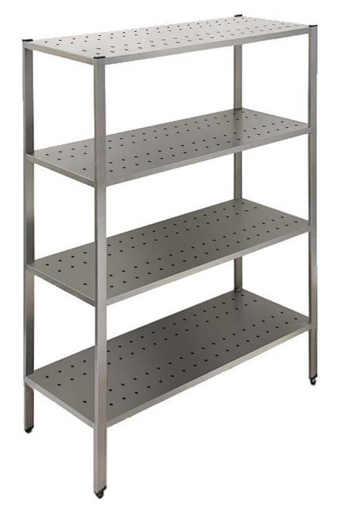 Simeco СТПП40903 предназначен для хранения посуды, кухонных приборов и принадлежностей, а также продуктов, не требующих специального температурного режима, на предприятиях общественного питания и торговли. Модель оснащена 4 регулируемыми по высоте перфорированными полками. Разборный каркас выполнен из трубы 40x20 мм нержавеющей стали AISI 430, полки - из нержавеющей стали AISI 430.