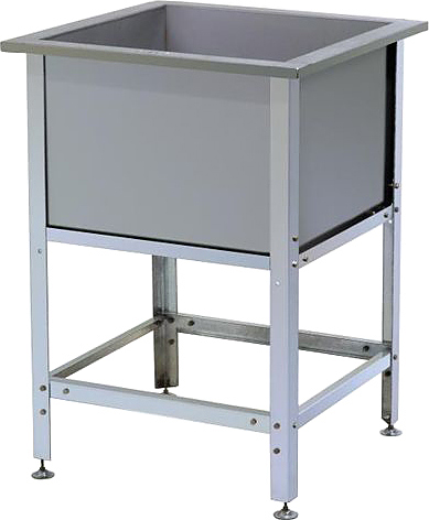 Модель оснащена ножками и загнутыми бортиками, делающими работу мойщика комфортной и безопасной. Емкость выполнена из нержавеющей стали AISI 430, каркас - из оцинкованной стали.