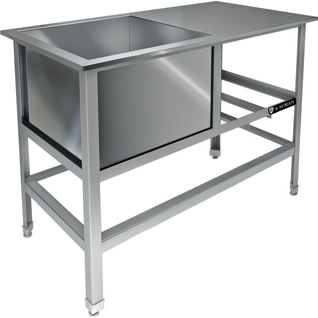 Моечная ванна KAYMAN ВМ-414/600 Л используется на предприятиях общественного питания и торговли для мойки продуктов питания, посуды и кухонных принадлежностей. Каркас выполнен из оцинкованного стального уголка, емкость и рабочая поверхность - из нержавеющей стали AISI 304.