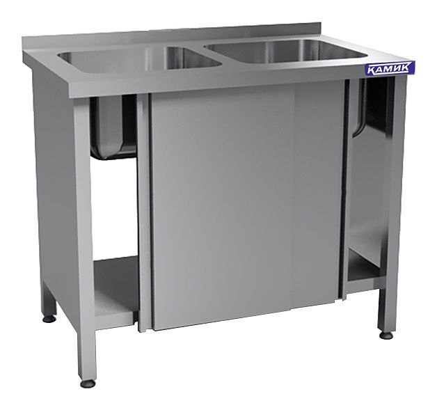 Моечная ванна КАМИК ВМ-2-451671 используется на предприятиях общественного питания и торговли для мойки посуды, овощей и фруктов. Сварной каркас и столешница выполнены из нержавеющей стали AISI 430, цельнотянутая емкость - из нержавеющей стали AISI 304.