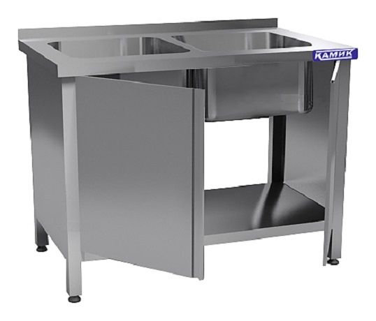 Моечная ванна КАМИК ВМ-2-451570 используется на предприятиях общественного питания и торговли для мойки посуды, овощей и фруктов. Сварной каркас и столешница выполнены из нержавеющей стали AISI 430, цельнотянутая емкость - из нержавеющей стали AISI 304.