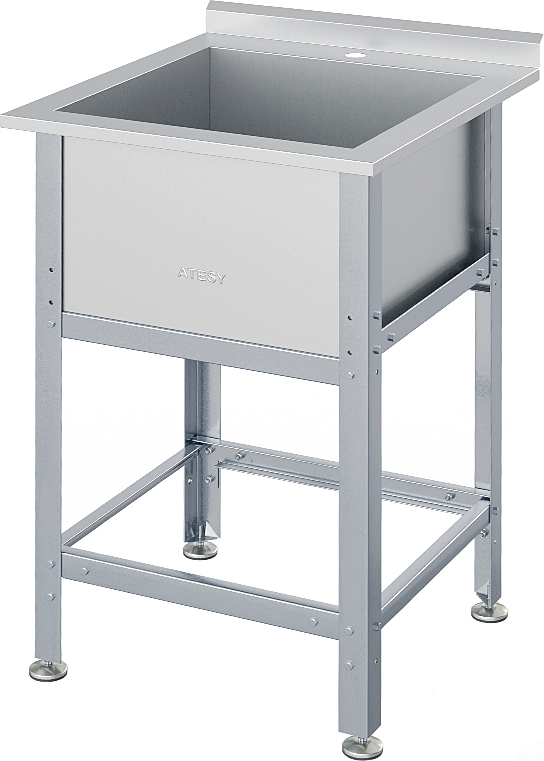 Моечная ванна ATESY ВСМ-Б-1.600-1-02 серии Бюджет предназначается для мытья посуды и кухонного инвентаря, овощей и фруктов, а также для оттайки замороженных продуктов. Кромки ванны имеют безопасную фальцовку, углы зашлифованы. Ножки регулируются по высоте. Тип конструкции - разборная. Материал каркаса - профиль из оцинкованной стали (толщина 1.2 мм), материал ванны - нержавеющая сталь AISI 430 (толщина 0.7 мм), материал опоры регуляторов высоты - нержавеющая сталь, ножки выполнены из пластика.