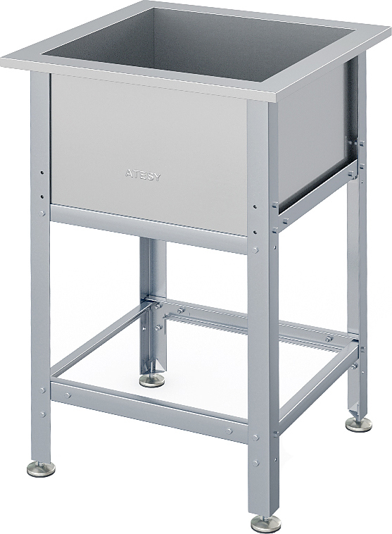 Моечная ванна ATESY ВСМ-Б-1.530-02-К серии Бюджет предназначается для мытья посуды и кухонного инвентаря, овощей и фруктов, а также для оттайки замороженных продуктов. Кромки ванны имеют безопасную фальцовку, углы зашлифованы. Ножки регулируются по высоте. Тип конструкции - разборная. Материал каркаса - профиль из оцинкованной стали (толщина 1.2 мм), материал ванны - нержавеющая сталь AISI 430 (толщина 0.7 мм), материал опоры регуляторов высоты - нержавеющая сталь, ножки выполнены из пластика.