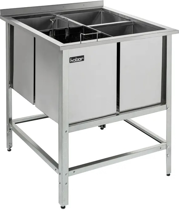 Моечная ванна Кобор ВМЯБ/1-70/70 предназначена для санитарной обработки яиц на предприятиях общественного питания и торговли. Сварной каркас выполнен из оцинкованного стального уголка, раковины - из нержавеющей стали AISI 430.