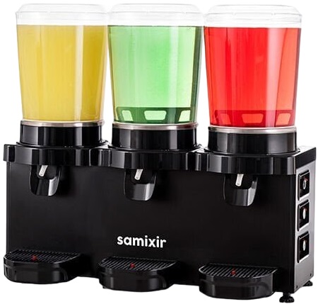 Сокоохладитель Samixir MMM30.AB используется в ресторанах, кафе, барах, супер- и гипер-маркетах, магазинах, на предприятиях уличной торговли и в развлекательных центрах для охлаждения и розлива различных сокосодержащих напитков. Модель оснащена механическим термостатом, антивандальной чашей из поликарбоната.