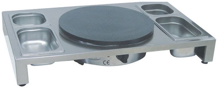 Блинница OZTI OKM-1S используется на предприятиях общественного питания, торговли и пищевых производствах для жарки блинов. Модель оснащена регулируемым термостатом, емкостями для ингредиентов и регулируемыми ножками. Материал корпуса - высококачественная нержавеющая сталь.