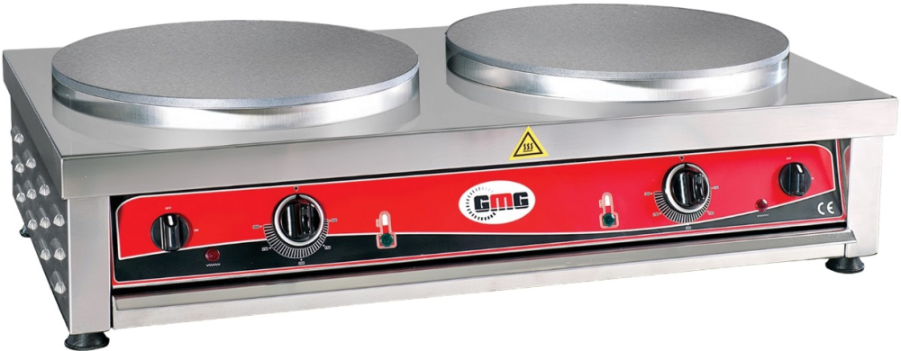 Блинница GMG CR-D 240 используется на предприятиях общественного питания, торговли и пищевых производствах для приготовления блинов. Модель оснащена 2 рабочими поверхностями. Материал корпуса - нержавеющая сталь, рабочие поверхности с антипригарным покрытием.