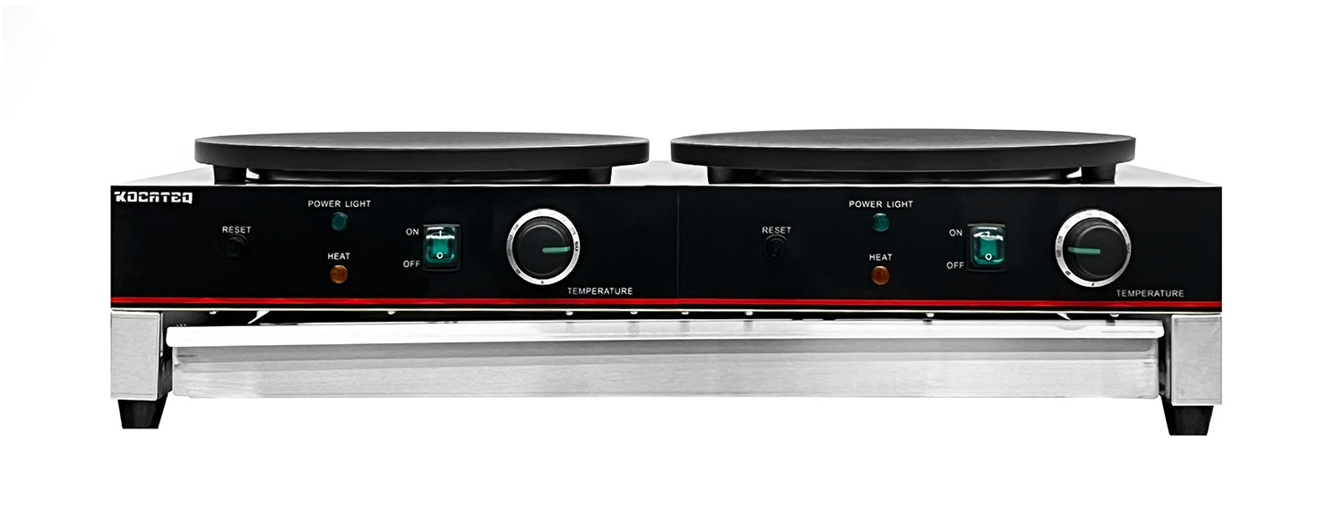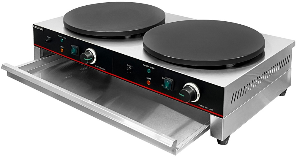 Блинница Kocateq JB 2P GL сери Green Line предназначается для формования, выпекания и стопирования блинных заготовок круглой формы на предприятиях общественного питания, торговли и пищевых производствах. Модель оснащена механическим управлением, индикатором напряжения выдвижным ящиком. Материал корпуса - нержавеющая сталь AISI 201/0.7, материал жарочной поверхности - чугун с антиприагрным покрытием.