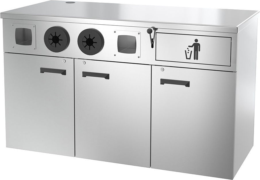 - 2 диспенсера для стаканов, 2 ниши для крышек и заслонка отделения для мусора, открываемая рычагом, на лицевой панели станции