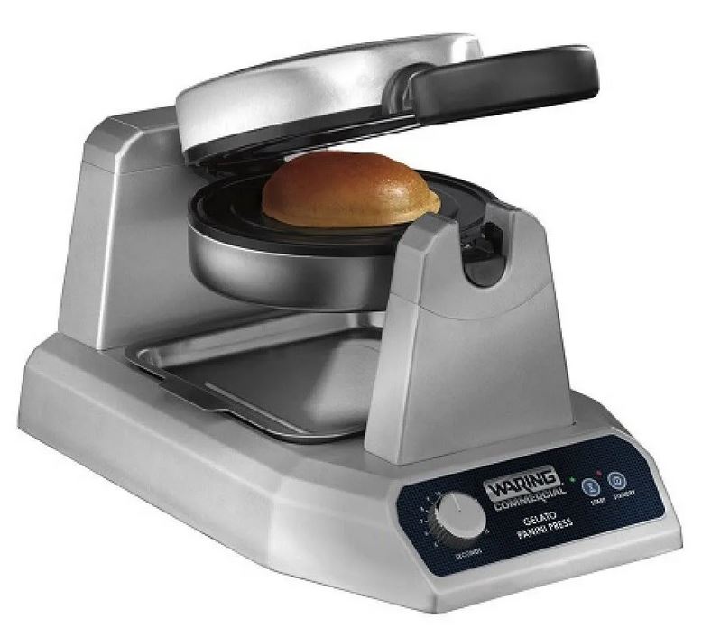 Вафельница Waring WWGP180E Gelato Panini Press предназначается для запечатывания замороженных десертов в булочке на предприятиях общественного питания, торговли и пищевых производствах. Нагревательные элементы вмонтированы в пластины, что гарантирует равномерное распределение нагрева и точный контроль температуры. Рабочие поверхности покрыты тройным антипригарным покрытием.