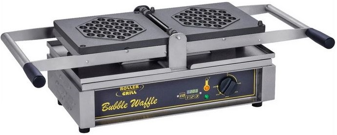 Вафельница Roller Grill GES 90 Bubbles используется на предприятиях общественного питания, торговли и в домашних условиях для выпекания гонконгских вафель. Модель оснащена терморегулятором и световыми индикатором нагрева. Материал корпуса - высококачественная нержавеющая сталь, материал поверхности - чугун, материал ручек - термостойкий материал.