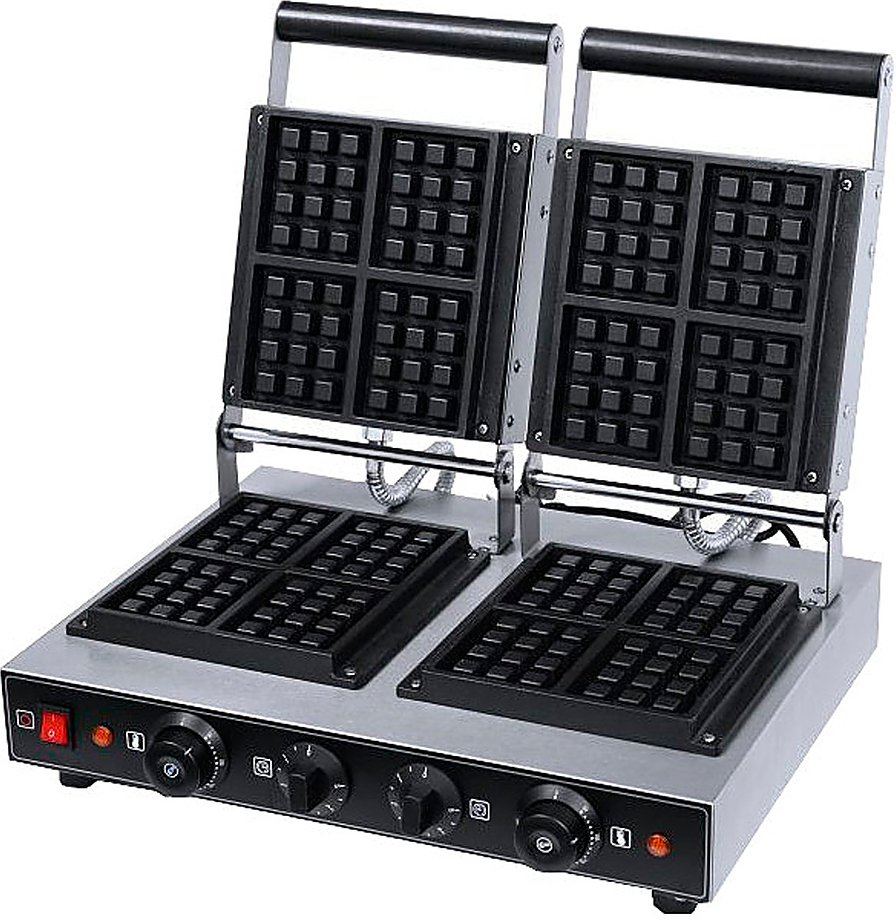 Вафельница Hurakan HKN-GED2L используется на предприятиях общественного питания и торговли для приготовления стандартных бельгийских вафель. Модель оборудована механической панелью управления и термостатами. Материал корпуса - нержавеющая сталь, рабочей поверхности - чугун с антипригарным покрытием.