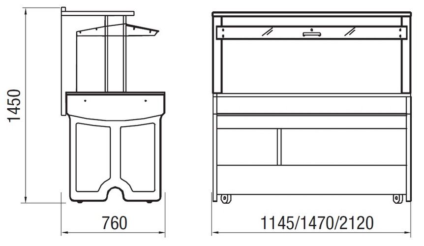• Роликовые колёсики дают возможность свободно перемещать салат-бар, несмотря на массивность конструкции. Для обеспечения стационарного положения два из четырёх колёсиков оснащены стопорными механизмами.