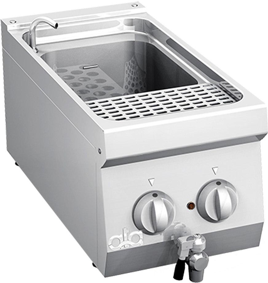 Макароноварка ATA K6ECP05TT предназначается для варки макаронных изделий всех видов, пельменей, вареников, корнеплодов и прочих продуктов, приготовления гарниров из круп на предприятиях общественного питания, торговли и пищевых производствах. Электромеханическая панель управления. Материал корпуса и корзины - нержавеющая сталь, материал нагревательного элемента - специальный сплав с оболочкой INCOLOY, стойкий к воздействию крахмала и соли.