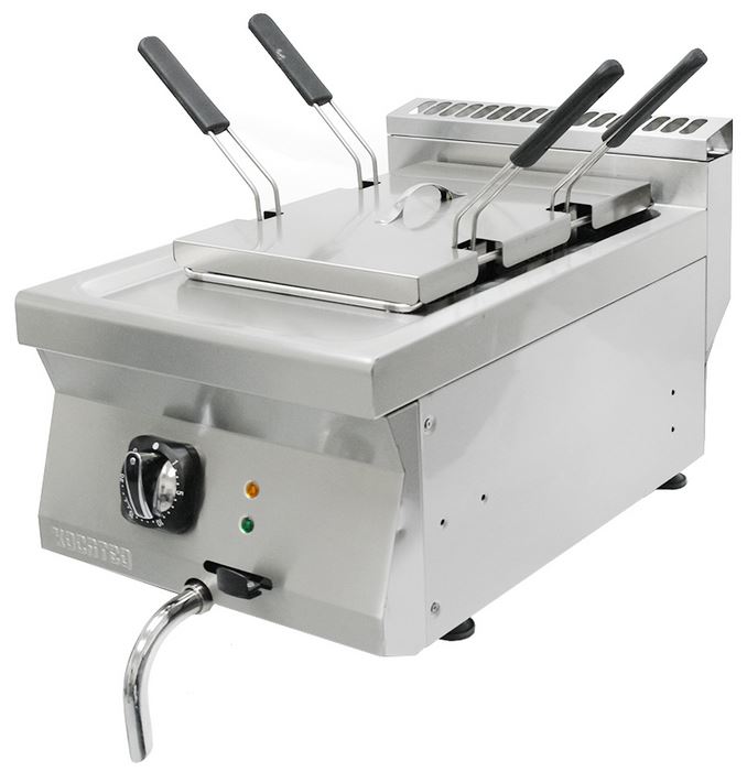 Макароноварка Kocateq MCEP 47 линии 700 используется на предприятиях общественного питания, торговли и пищевых производствах для приготовления и размораживания кукурузы, фрикаделек, макаронных изделий, пельменей, вареников, овощей, фруктов и других продуктов питания. Модель оснащена термостатом, световыми индикаторами, теплоизолированными ручками и регулируемыми ножками. Материал корпуса - высококачественная нержавеющая сталь.