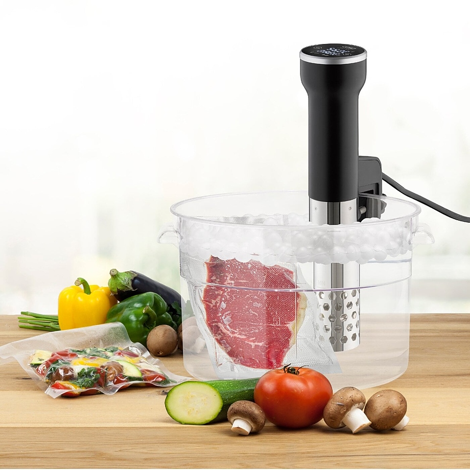 Аппарат Sous Vide CASO SV 400 используется на предприятиях общественного питания, торговли, пищевых производствах и в домашних условиях для приготовления пищи в герметичных пакетах, погружённых в горячую воду при низких температурах, что помогает сохранить питательные вещества, витамины и минералы, а также обеспечивает яркий вкус мяса и овощей. Модель оснащена сенсорным управлением, таймером и световым индикатором. Материал корпуса - высококачественная нержавеющая сталь.