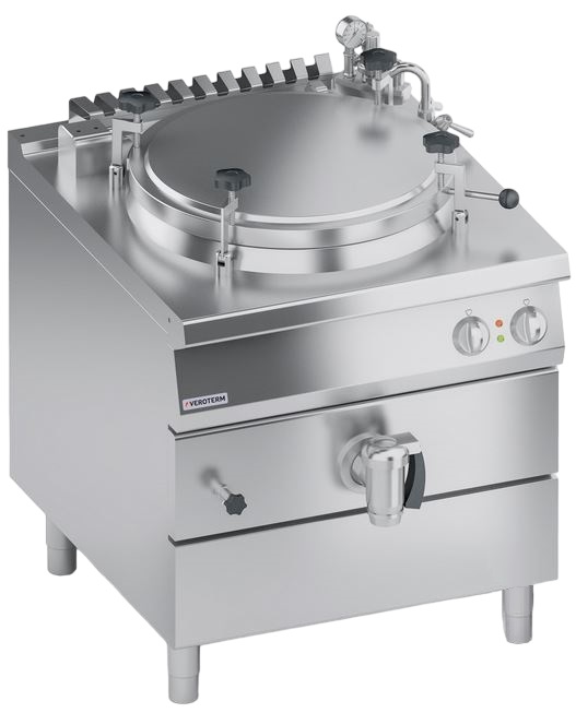 Варочный котел Veroterm VT4PIES1011A серии 900 используется на предприятиях общественного питания, торговли и пищевых производствах для кипячения воды, варки овощей, приготовления первых, вторых и третьих блюд. Модель оснащена механическим управлением, автоклавом, регуляторами мощности, двухслойной крышкой, краном и целнотянутой емкостью. Материал изделия - высококачественная нержавеющая сталь AISI 430 (толщина 1 мм).
