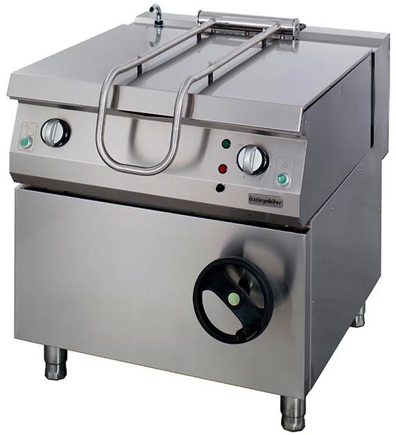 Опрокидывающая сковорода OZTI OTE 50 серии 700 используется на предприятии общественного питания, торговли и пищевых производствах для жарки, тушения, пассерования, припускания овощей, мяса, рыбы и других продуктов питания. Модель оснащена механическим управлением, защитой от перегрева, двухслойной крышкой, наклоном с помощью колеса, электромагнитным клапаном, хромированным вертлюжным краном и ножками. Материал изделия - высококачественная нержавеющая сталь.
