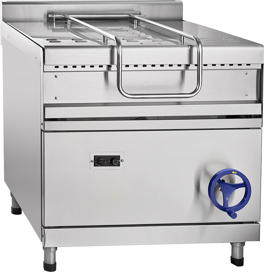 Опрокидывающаяся сковорода Abat ГСК-90-0,47-70 предназначена для приготовления мяса, рыбы, овощей и других продуктов методом жарки, тушения, припускания, пассерования, приготовления на пару и во фритюре на предприятиях общественного питания и торговли. Модель оснащена цельнотянутой сварной чашей, газ-контролем, пьезорозжигом, фиксацией ручки крышки в любом положении и регулируемыми по высоте ножками.