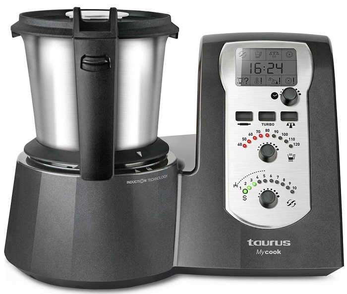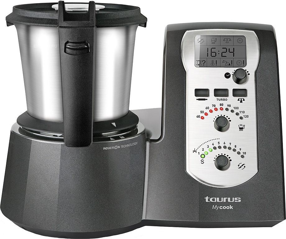 Термоблендер Taurus Mycook предназначен для приготовления овощных пюре, смузи, муссов, кремов и супов-пюре и взбивания сливок на предприятиях общественного питания и торговли. Модель оснащена дисплеем с индикацией времени, регулятором скорости и 2 ротационными 4-лопастными ножами. Корпус выполнен из нержавеющей стали.