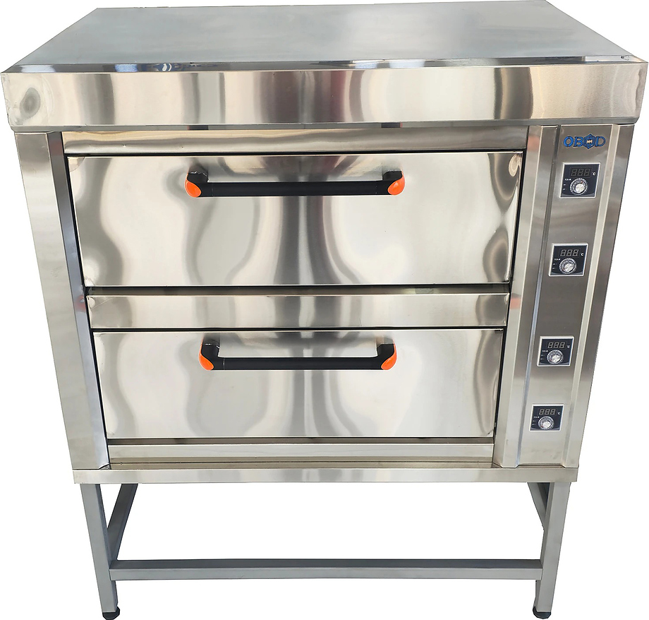 Духовой шкаф OBOD/2 уровня предназначена для приготовления различных блюд и выпечки хлебобулочных и кондитерских изделий на предприятиях общественного питания, торговли и пищевых производствах. Модель оборудована электромеханическим управлением, регулировкой температуры, 2 термостатами для каждой камеры, жаропрочным стеклом и внутренней подсветкой. Материал подов - углеродистая сталь толщиной 3 мм, материал дверц - высококачественная нержавеющая сталь, материал ТЭН - нержавеющая сталь AISI 304.