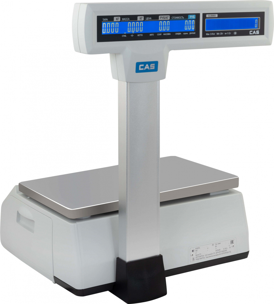 Торговые весы CAS CL5000J-6IP TCP-IP используются на предприятиях общественного питания и торговли. Модель оснащена цифровым и алфавитно-числовым жидкокристаллическими дисплеями на стойке.